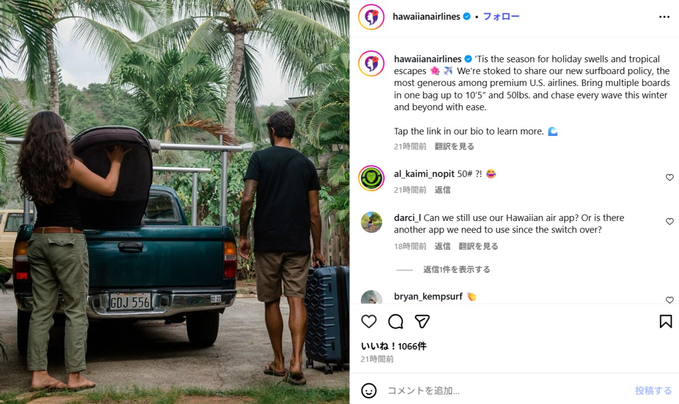 9月にハワイアン航空利用でサーフボードの運搬拒否されたジョエル・チューダーが、その怒りをSNS投稿したニュースがありました。