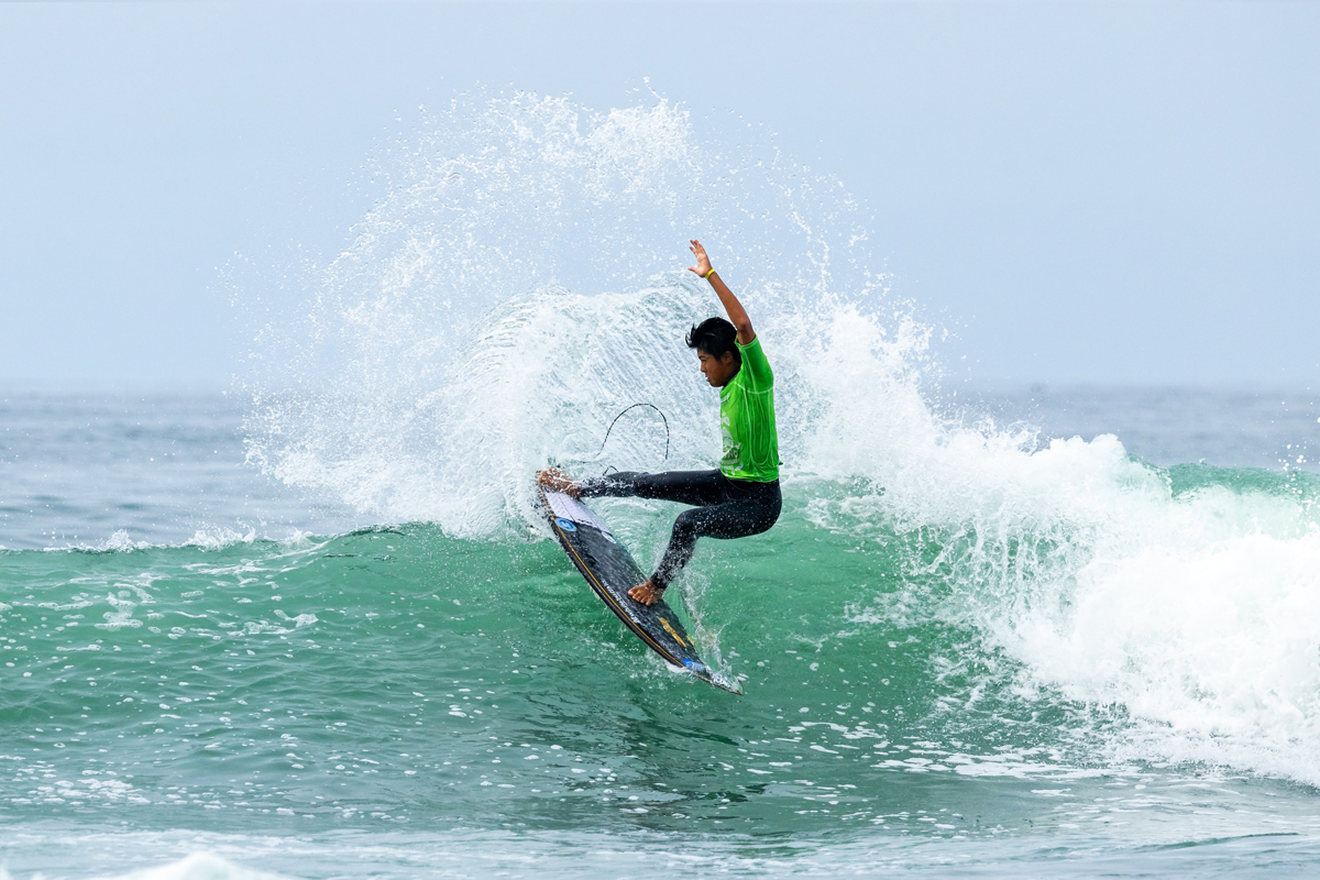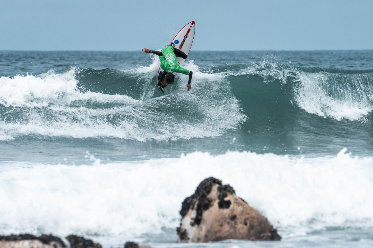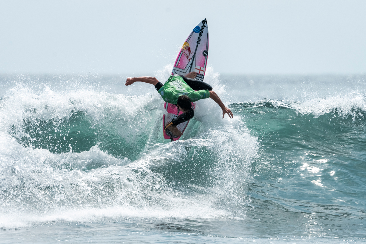 長いレフトのミドルセクションでテールハイのリバースを決めたジェイコブ・ターナー(HAW)は、U18 男子メインラウンド 3 で最初のエクセレントスコアとなる 8.23 を記録し、3 回連続のヒート勝利を収めた。