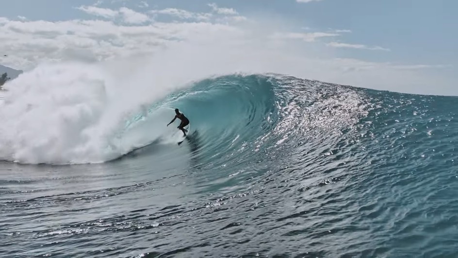 動画前半では怪我をするまでのハワイでのサーフシーン、後半は復帰後のインドネシアでのサーフシーンとなります。