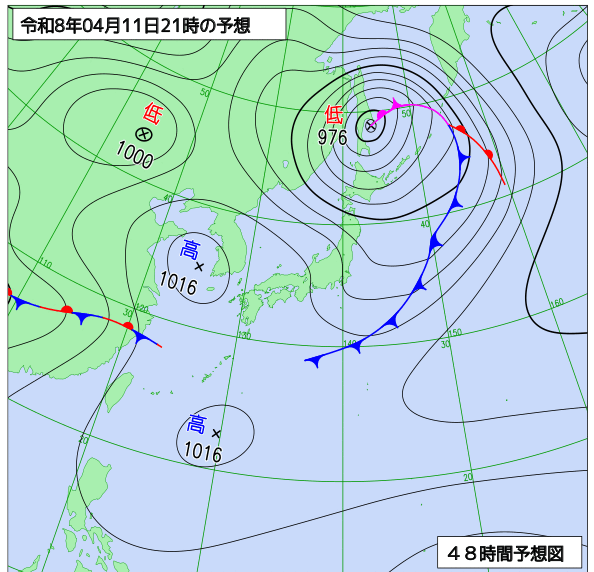 今週末は前線を伴った低気圧が北海道付近からオホーツク海へ移動。